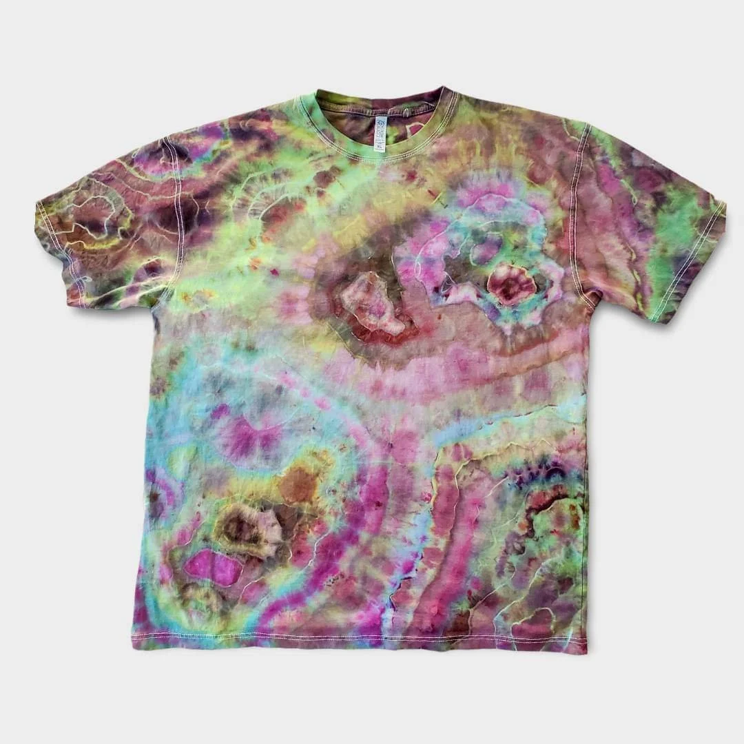 Let's make something together! I love upcycling shirts that have seen a better day, or a great graphic tee that’s just begging to be cooler. I also keep an inventory of blank apparel on hand in a wide range of sizes if you're interested in a brand new dye in the colors and design of your choosing. Since every piece is created individually with ice and resist techniques, each garment is a unique creation.